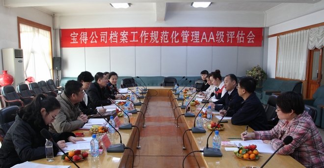 1月31日,由遼寧省檔案局業(yè)務(wù)指導(dǎo)處歐平處長、副處長葛仁軍、科員于佳,市檔案局趙壽安副局長、王一鳴處長、楊琳副處長組成的評估組,到公司進(jìn)行檔案工作規(guī)范化管理“AA”級評估,經(jīng)過認(rèn)真細(xì)致的檢查,一致通過了公司檔案工作規(guī)范化管理“AA”級評估。